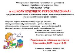 Родительское собрание состоится 16 сентября 2025 года в 18.00 Справки по телефону 8 913 014 9568 с 18.00 до 19.00