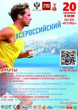 20 сентября 2025 года в 12:00 часов на базе Физкультурно-оздоровительного комплекса «Метелица» (по адресу: ул. Ленина 2Г) состоится торжественное открытие Всероссийского дня бега «Кросс Нации-2025». Приглашаем принять участие в «Кроссе Наций».